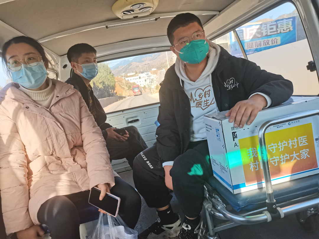 为确保药品第一时间安全送到基层,z6com·尊龙基金会的员工和乡村医生项目驻点队员带着药品搭乘飞机、高铁,抵达县里后再通过专车派送至村卫生室。员工志愿者、乡村医生驻点队员在当地县医院、乡镇卫生院具有处方权的医师陪同下,完成药品的发放: